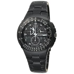 Sporting a hardened, special ops look, the Citizen Black Eagle Skyhawk stainless steel men's flight watch offers advanced timing functions and the latest technology. It's powered by Citizen's unique Eco-Drive, which absorbs sunlight and any artificial light through the crystal and dial to recharge the watch continuously. The fast-forward timekeeping features include time and calendar in twenty-two time zones, thirty cities, three world time alarms, a 99-minute countdown timer, one-touch interchangeable analog/digital time, and 1/100-second chronograph that measures up to 24 hours.