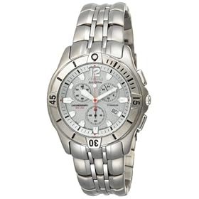Explore new, exciting depths with this men's Eco-Drive 200 Meter dive timepiece. Equipped with large titanium case and bracelet, and boldly luminous hands and markers, you'll be able to easily read the time whether you're diving deep into the sea or relaxing next to the pool. Additional features include a 1 second chronograph and 12/24 hour time indicator.