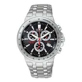 This men's Eco-Drive timepiece is a perfect fit. From the titanium case and bracelet and 1 second chronograph to the 12/24 hour time indicator, the consistent timepiece offers variety with style. Additional features include a date indicator, screw-back case and water resistant to 100 meters.
