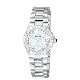 Eco-friendly, thanks to both the conflict-free diamonds on its bezel and its solar powered design, the lovely Riva Watch #EW0890-58D from Citizen's Eco-Drive Collection instantly charms. A slender, circular case surrounds a luminous mother-of-pearl dial, complete with silver-tone hands and dot markers, as well as a date display at three o'clock. A polished stainless steel bracelet ensures a sophisticated look. Water resistant to 100 feet, the Riva is backed by a five-year warranty.