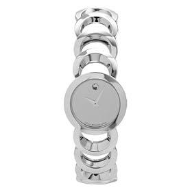 Featuring the utterly recognizable, minimalist look of Movado's famed Museum Watch, this Movado Rondiro features a uniquely designed bracelet composed of interlocking rings. The silver dial includes just the signature single dotted marker at 12 o'clock--evocative of a sun dial--and two silver hands. Nicely svelte on your wrist, it measures 25mm wide (0.98 inches) and has a recessed crown. Powered by a precise Swiss quartz movement, it also features a highly scratch-resistant sapphire crystal and water resistance to 30 meters (100 feet)--enabling it to withstand splashes and accidental dunks into the water, but not suitable for swimming.