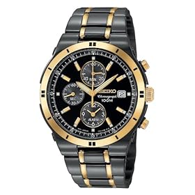 Wrapped in a stylish polished titanium carbon nitride case, this Seiko men's alarm chronograph dress watch can measure up to 60 minutes in 1/5 second increments. After 60 minutes it will start counting again from zero, repeatedly up to 12 hours. The alarm can be set on a 12-hour basis with two small hands. Alarm hands can indicate the time in a different time zone. The crystal is made of Hardlex, a heat-treated composite material containing barium and silicon that withstands scratching and marring better than glass. The hands illuminate with LumiBrite, a new luminous material brighter and longer lasting than conventional luminous paints, and completely free of radioactive materials, making it safer for both people and the environment.