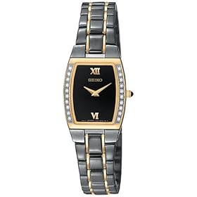 With a unique blend of sporty style and grace, this Black Ion Finish watch with gold tone accents is adorned by 20 sparkling diamonds on its bezel. But there’s more to capture the eye including an elegant cabochon crown and black dial. 30 meters water resistant. Matching men’s watch also available, model SKP340.